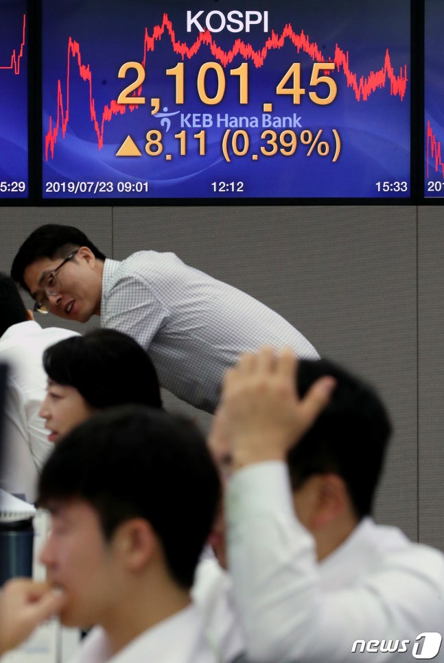 (¼¿ï=´º½º1) ¹ÚÁ¤È£ ±âÀÚ = ¿Ü±¹ÀÎÀÇ 7ÀÏ ¿¬¼Ó ¼ø¸Å¼ö°¡ À̾îÁö¸ç ÄÚ½ºÇǰ¡ »ó½Â ¸¶°¨ÇÑ 23ÀÏ ¿ÀÈÄ ¼¿ï Áß±¸ KEBÇϳªÀºÇà ¸íµ¿Á¡ µô¸µ·ë Àü±¤ÆÇ¿¡ ÄÚ½ºÇÇ Áö¼ö°¡ Àü °Å·¡ÀÏ ´ëºñ 8.11Æ÷ÀÎÆ®(0.39%) ¿À¸¥ 2,101.45¸¦ ³ªÅ¸³»°í ÀÖ´Ù.
