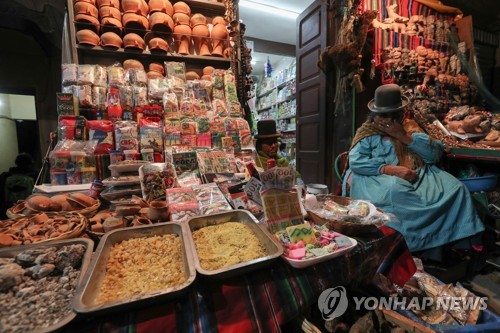 Goods are displayed at the Market of the Witches of La Paz in the city of La Paz, Bolivia, 29 May 2019. The market received a declaration of Intangible Cultural Heritage on 29 May for serving as a point of reference for original knowledge, Andean ritual offerings and traditional medicine. EPA/MARTIN ALIPAZ