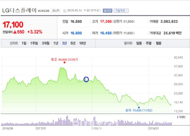 ÇÏÁö¸¸ ½Ã°£À» ºÒ°ú 1~2³â ÀüÀ¸·Î µÇµ¹·Áº¸¸é ´ç½Ã À̵é ȸ»ç °æ¿µÁøµéÀÇ ÀÚ»çÁÖ ¸ÅÀÔÀÌ °á°úÀûÀ¸·Î ÁÖ°¡ »ó½ÂÀ¸·Î À̾îÁöÁø ¾Ê¾Ò´Ù´Â »ç½ÇÀ» ¾Ë ¼ö ÀÖ½À´Ï´Ù. LGµð½ºÇ÷¹ÀÌÀÇ °æ¿ì 2017³â ÇÑÇØ ¿µ¾÷ÀÌÀÍÀÌ 2Á¶ 4616¾ï¿ø¿¡ ´ÞÇÏ´Â »ç»ó ÃÖ´ë ½ÇÀûÀ» °ÅµÐ Á÷ÈÄÀÎ 2018³â 1ºÐ±â Áß±¹ BOEÀÇ LCD(¾×Á¤Ç¥½ÃÀåÄ¡) Àú°¡°ø¼¼·Î ÀÎÇØ ÀûÀÚ ÀüȯµÇ¸ç 983¾ï¿øÀÇ ¿µ¾÷¼Õ½ÇÀ» ±â·ÏÇß½À´Ï´Ù. 1ºÐ±â ½ÇÀû ¹ßÇ¥ ¾ó¸¶ µÚÀÎ ±×ÇØ 5¿ù 8ÀÏ ÇÑ»ó¹ü ºÎȸÀåÀº ÀÚ»çÁÖ 1¸¸ 7000ÁÖ¸¦ Æò´Ü 2¸¸ 3662¿ø¿¡ Àå³» ¸Å¼ö Çß½À´Ï´Ù.